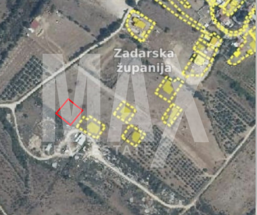 Murvica (Zadar) - građevinski teren od 1017m2, pravilnog oblika s pristupnim putem. Lokacija terena je idealna za gradnju obiteljske kuće ili kuće za odmor.Priključak za struju je u blizini.U blizini je već početa gradnja novih objekata.